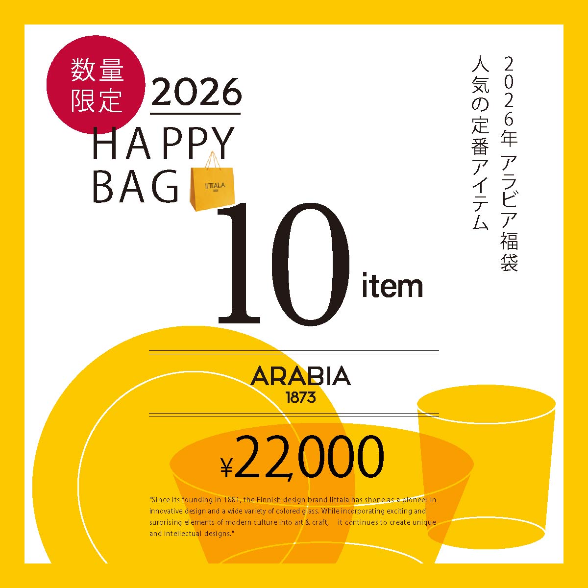 今年も北欧ブランド「IITTALA(イッタラ)」と「ARABIA(アラビア)」の お得な福袋をご用意しました。